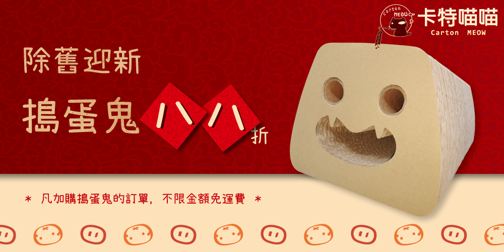 活動辦法:在 卡特喵喵 官方購物商城 購物,當筆訂單加購「搗蛋鬼」,即可享有搗蛋鬼88折,且當筆訂單不限金額免運費!